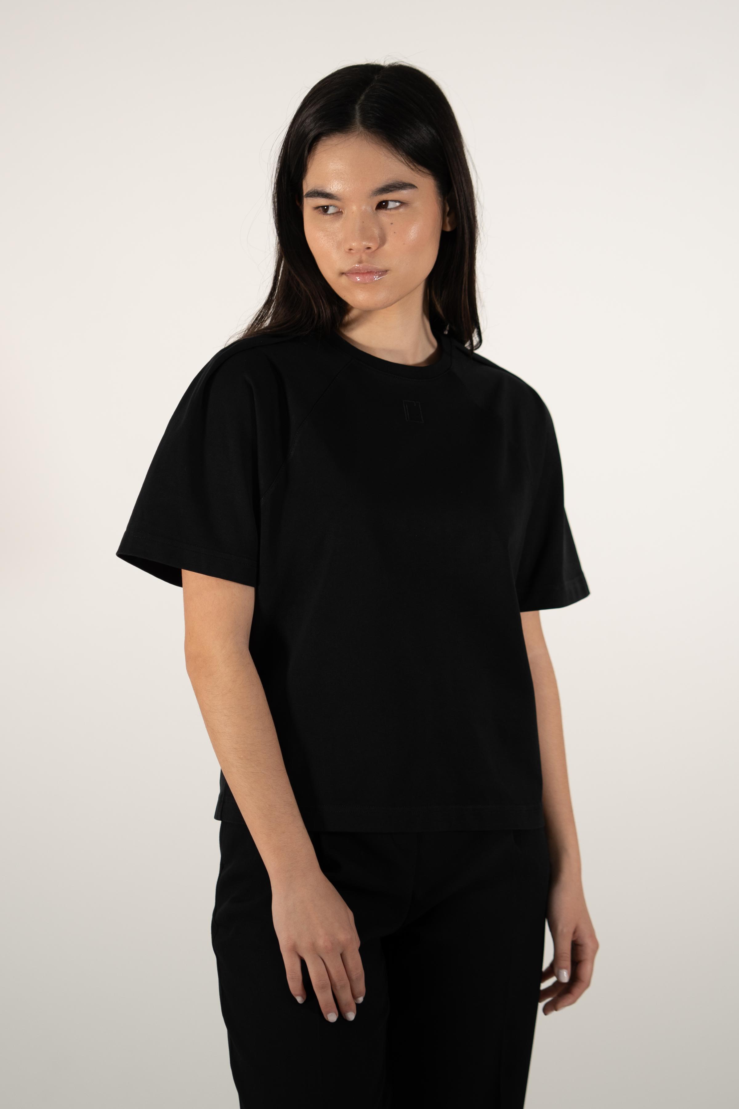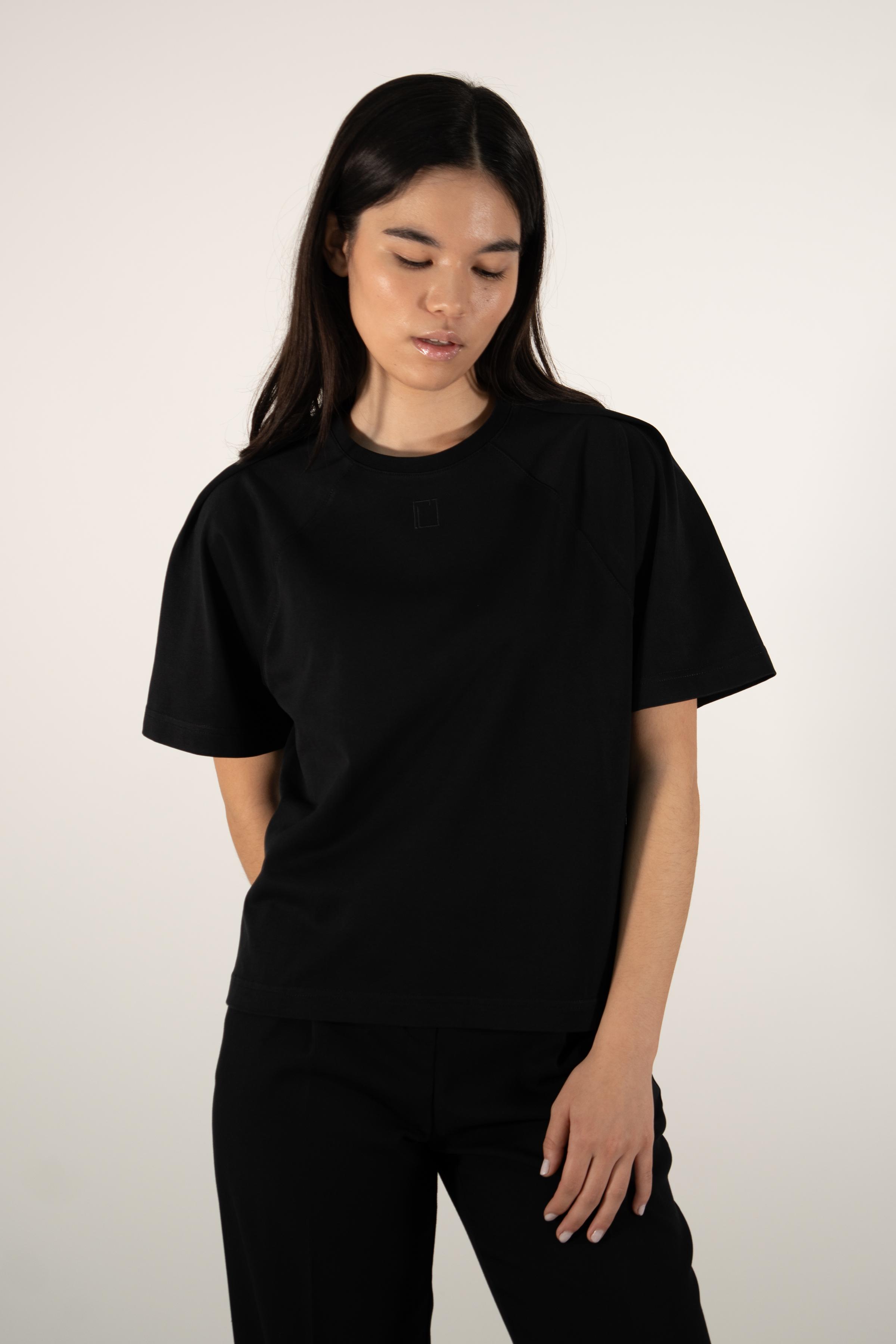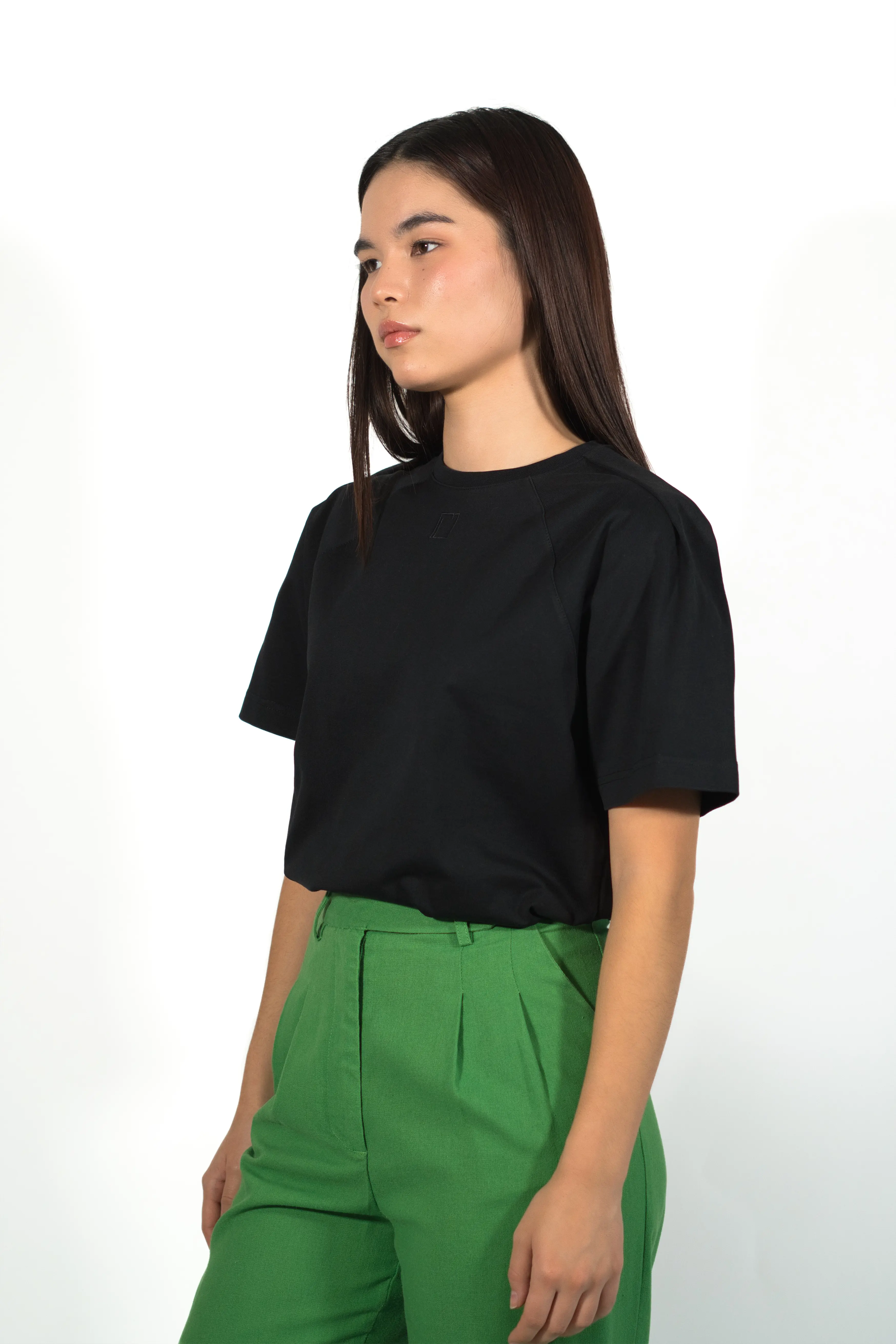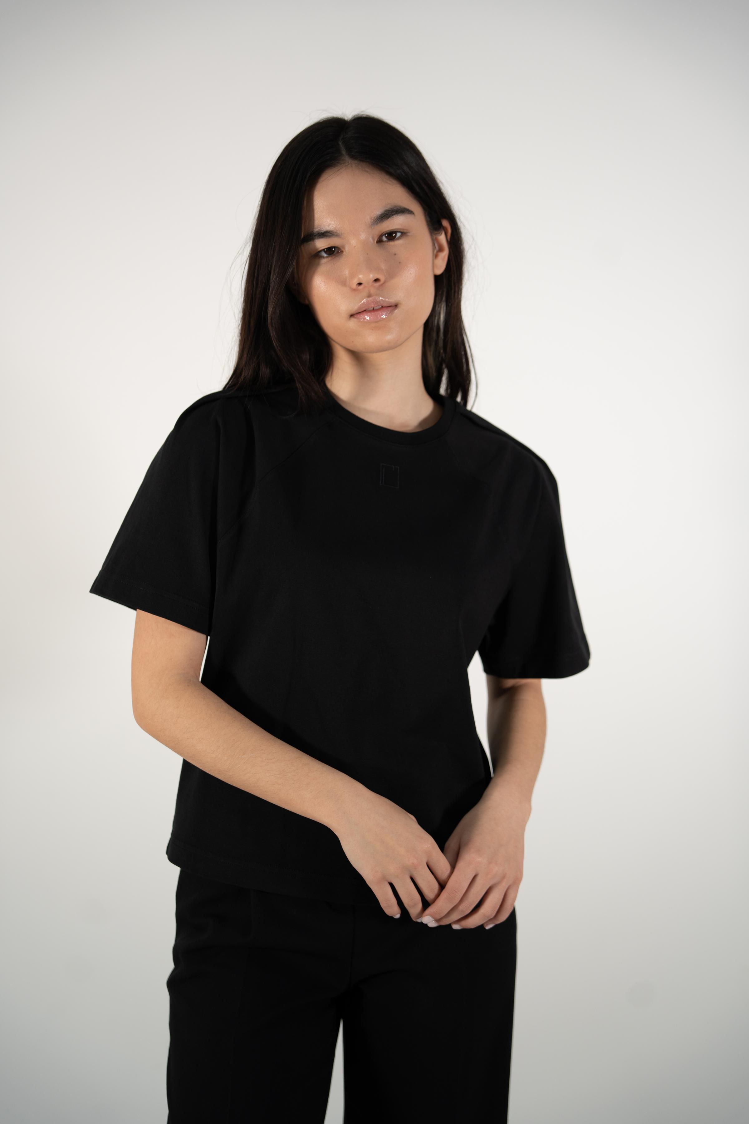 Un giro en nuestra clásica camiseta negra de algodón. Esta pieza única presenta un corte diagonal, que le da un ajuste holgado y oversized, brindando mayor libertad de movimiento. Confeccionada con algodón premium, garantiza comodidad y transpirabilidad durante todo el día. El bordado del logo, ubicado en el centro de la camiseta, añade un toque de sofisticación a su estilo contemporáneo. Con su diseño versátil, ya sea para un look casual con jeans o un estilo más relajado, esta camiseta negra de algodón es el epítome del estilo y la comodidad sin esfuerzo.