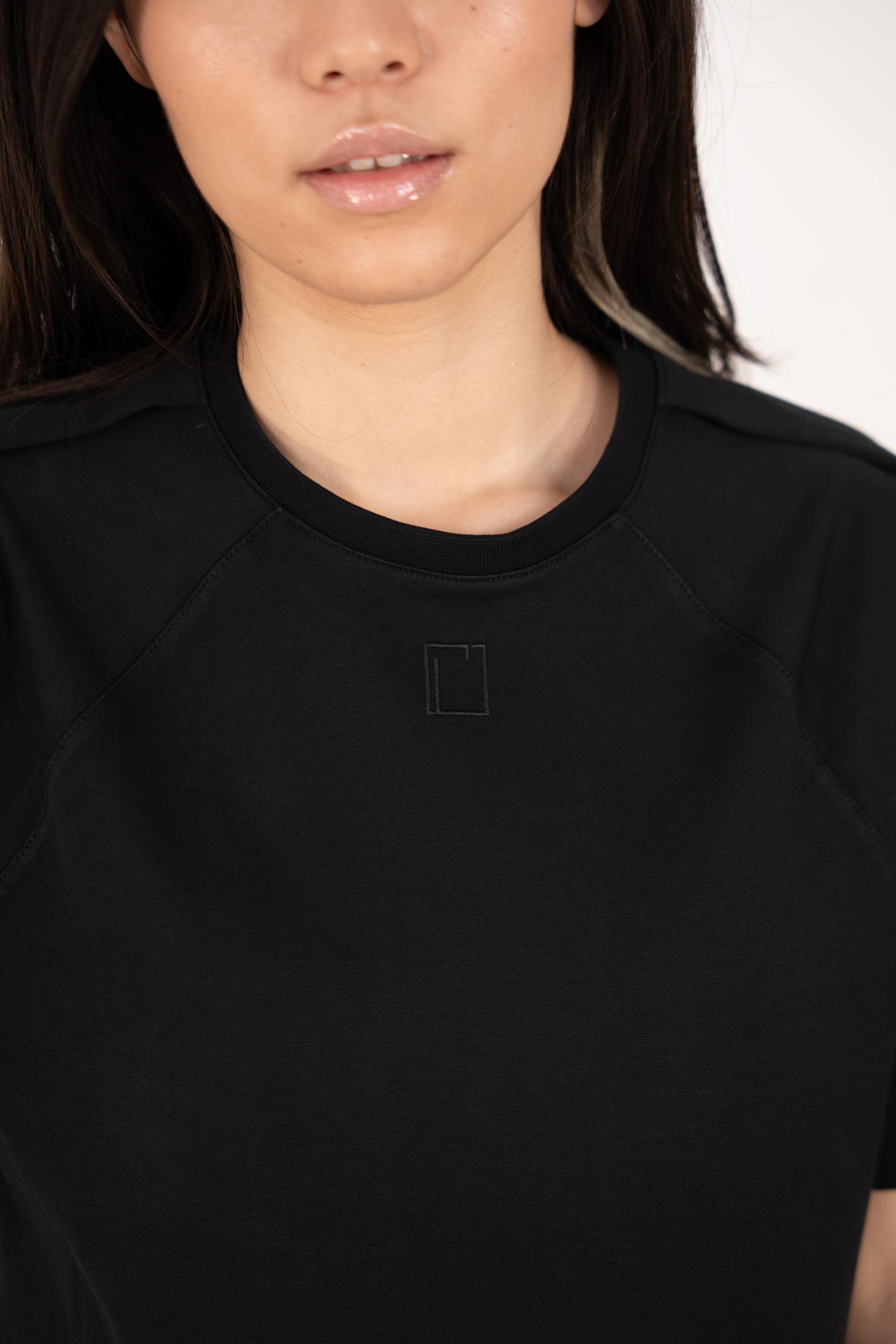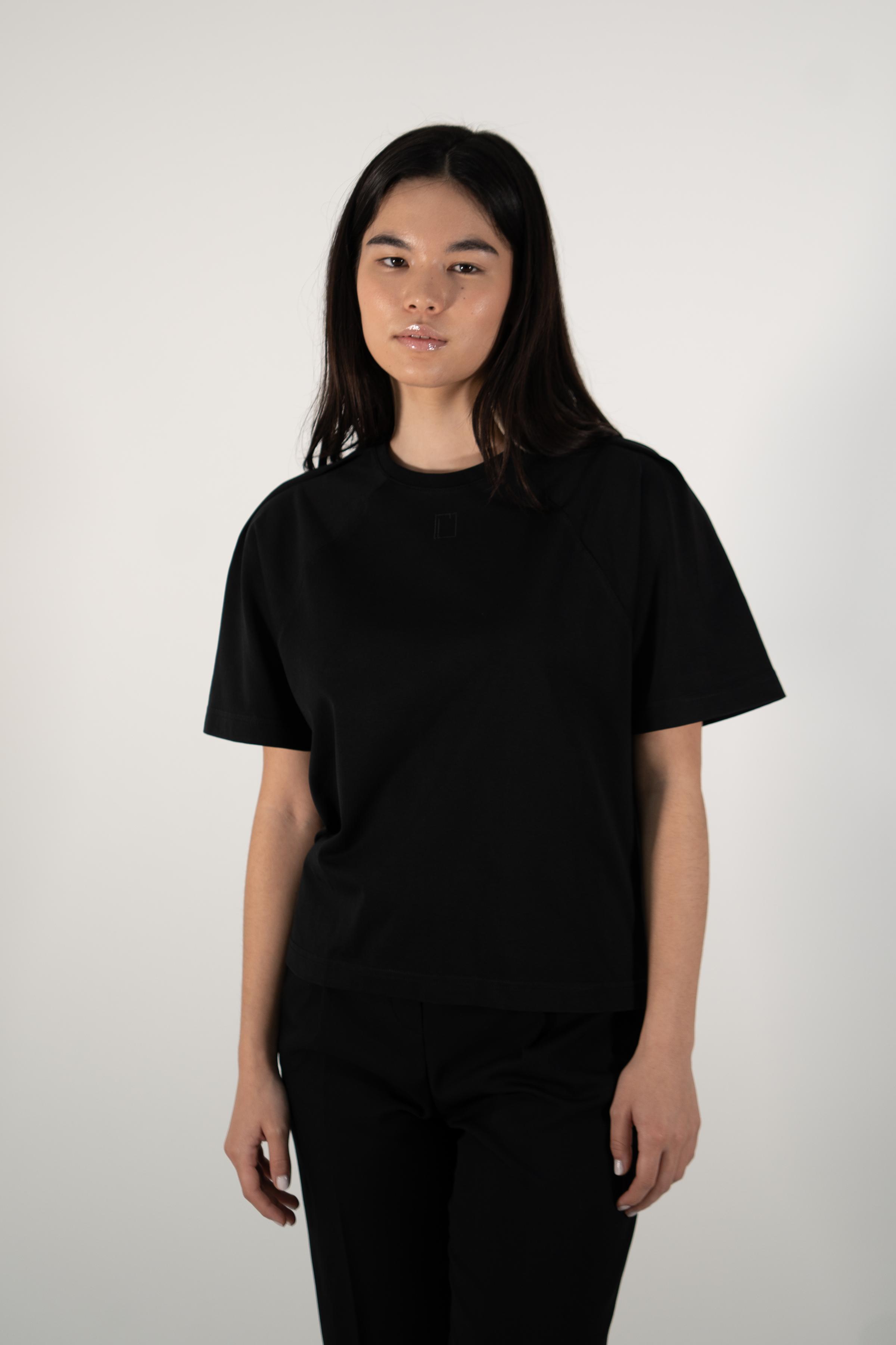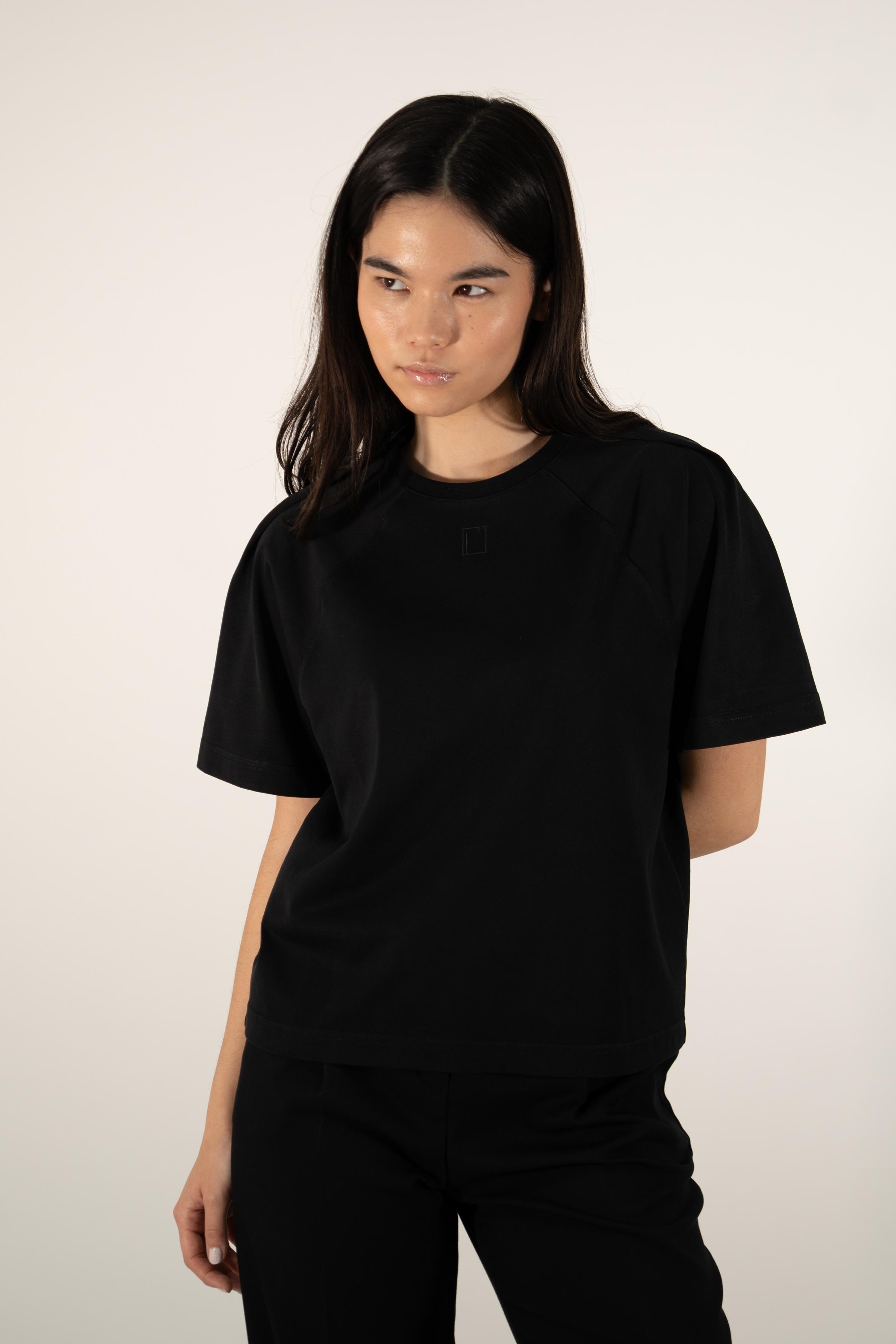 Un giro en nuestra clásica camiseta negra de algodón. Esta pieza única presenta un corte diagonal, que le da un ajuste holgado y oversized, brindando mayor libertad de movimiento. Confeccionada con algodón premium, garantiza comodidad y transpirabilidad durante todo el día. El bordado del logo, ubicado en el centro de la camiseta, añade un toque de sofisticación a su estilo contemporáneo. Con su diseño versátil, ya sea para un look casual con jeans o un estilo más relajado, esta camiseta negra de algodón es el epítome del estilo y la comodidad sin esfuerzo.