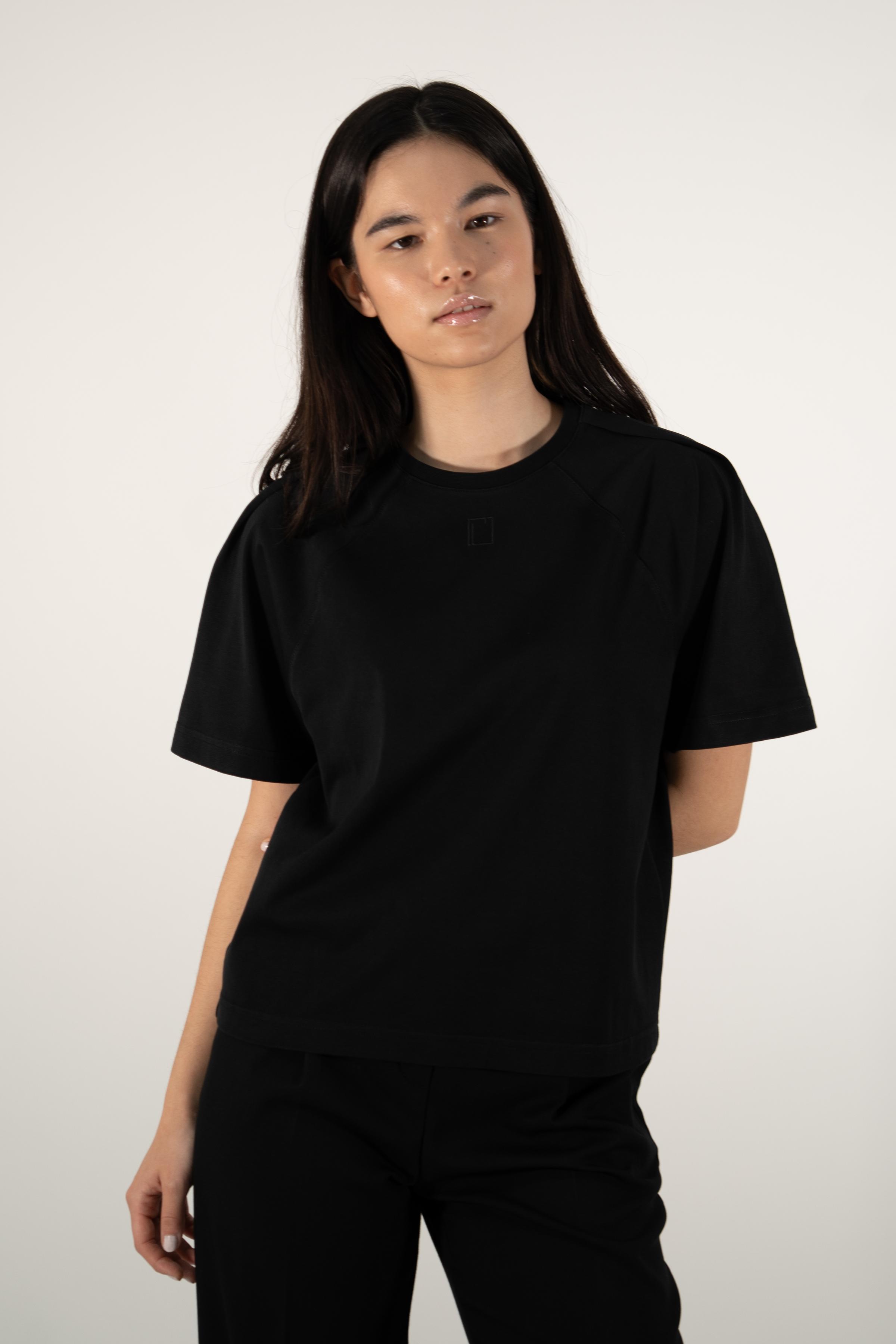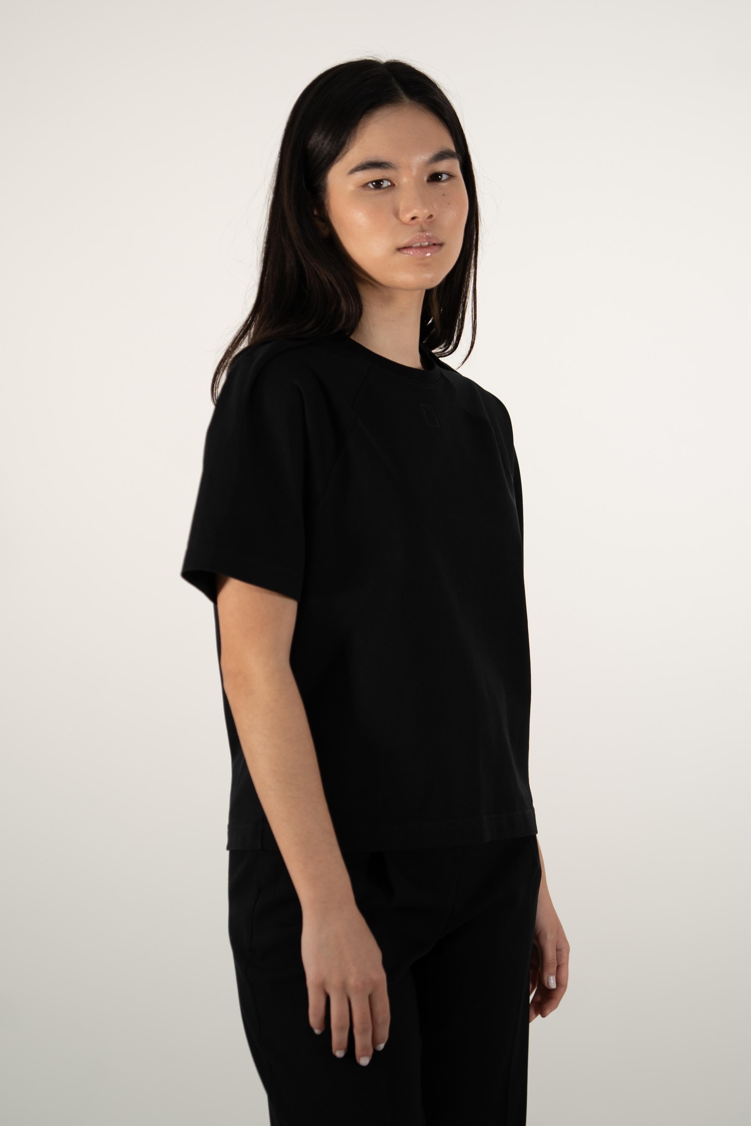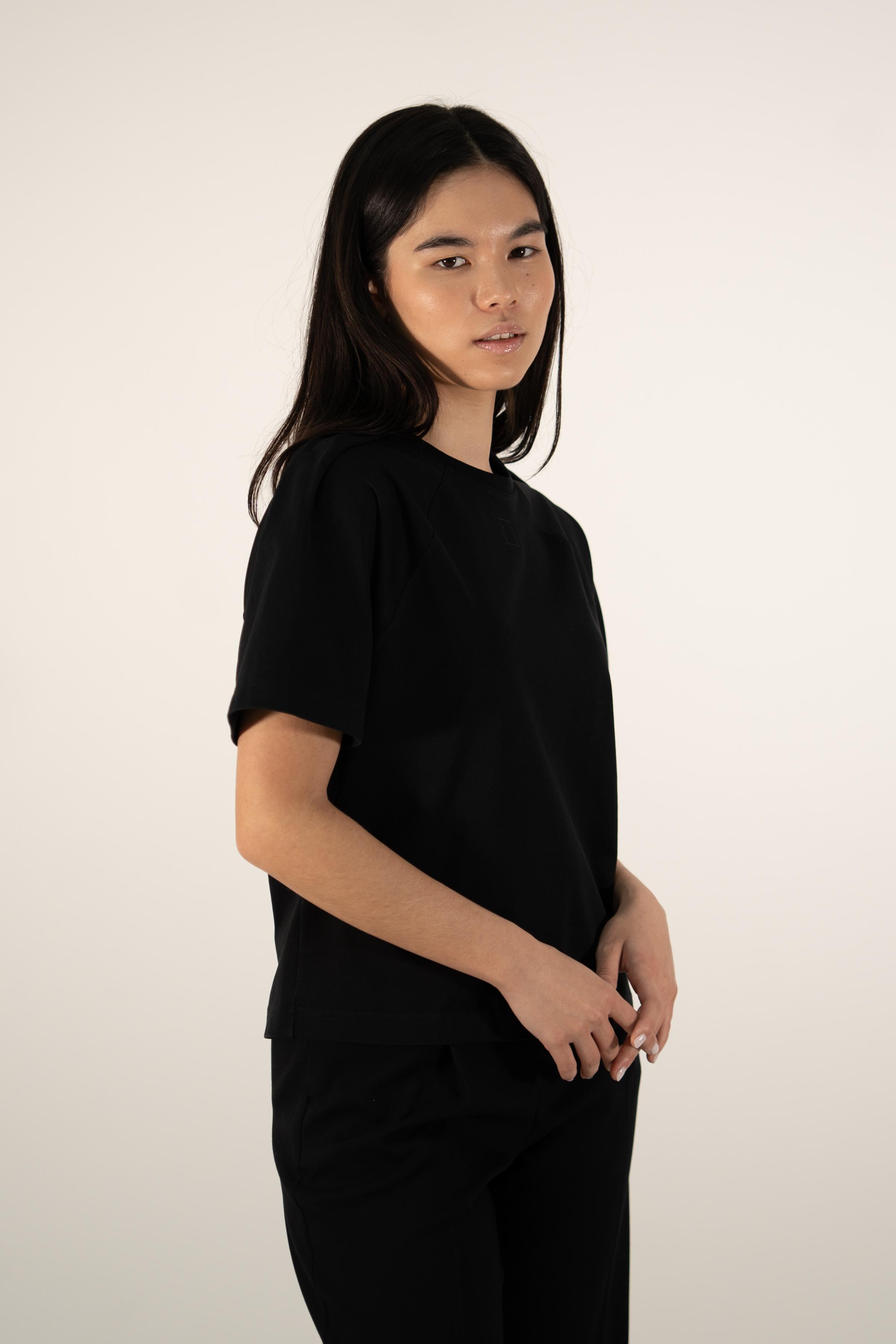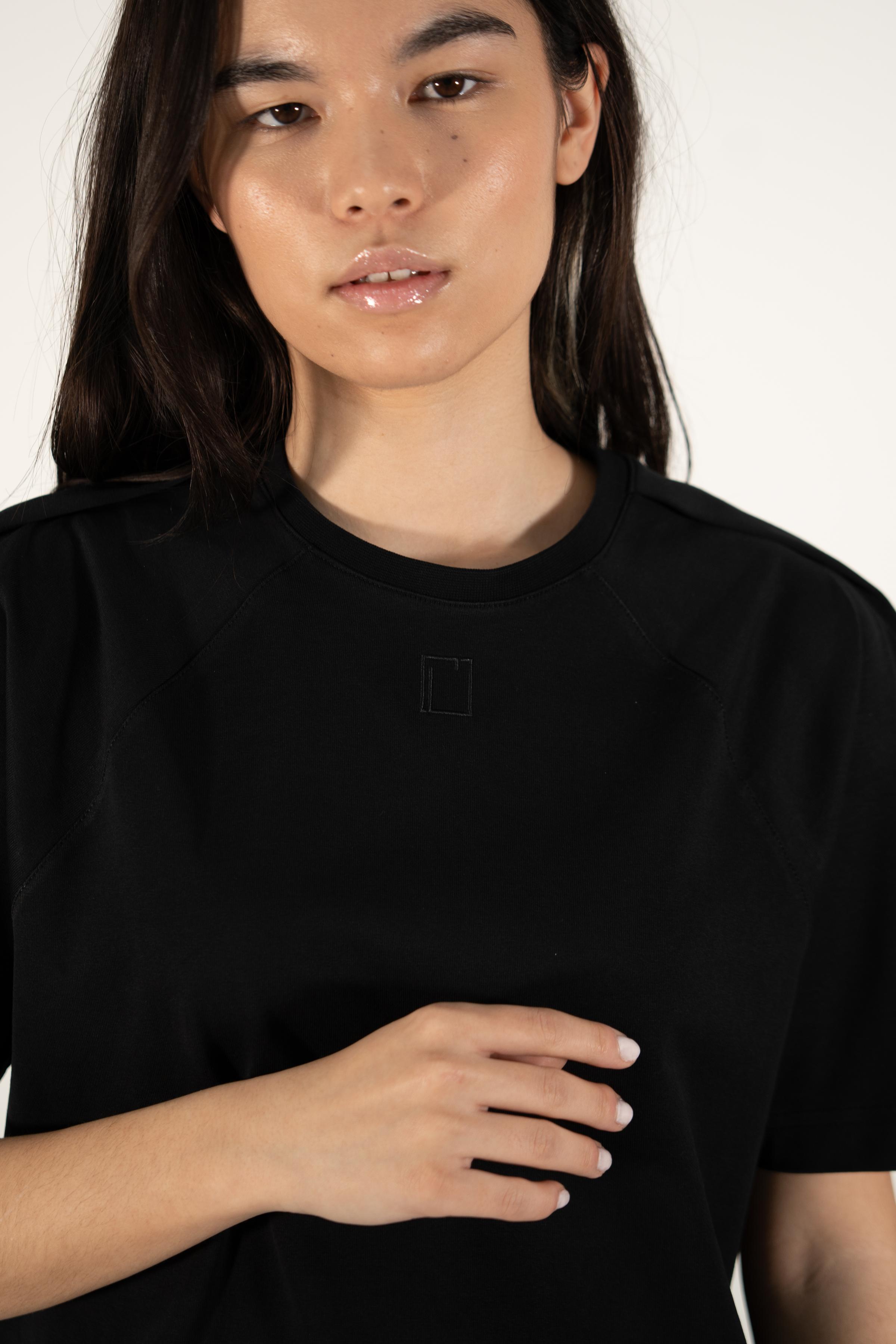 Un giro en nuestra clásica camiseta negra de algodón. Esta pieza única presenta un corte diagonal, que le da un ajuste holgado y oversized, brindando mayor libertad de movimiento. Confeccionada con algodón premium, garantiza comodidad y transpirabilidad durante todo el día. El bordado del logo, ubicado en el centro de la camiseta, añade un toque de sofisticación a su estilo contemporáneo. Con su diseño versátil, ya sea para un look casual con jeans o un estilo más relajado, esta camiseta negra de algodón es el epítome del estilo y la comodidad sin esfuerzo.