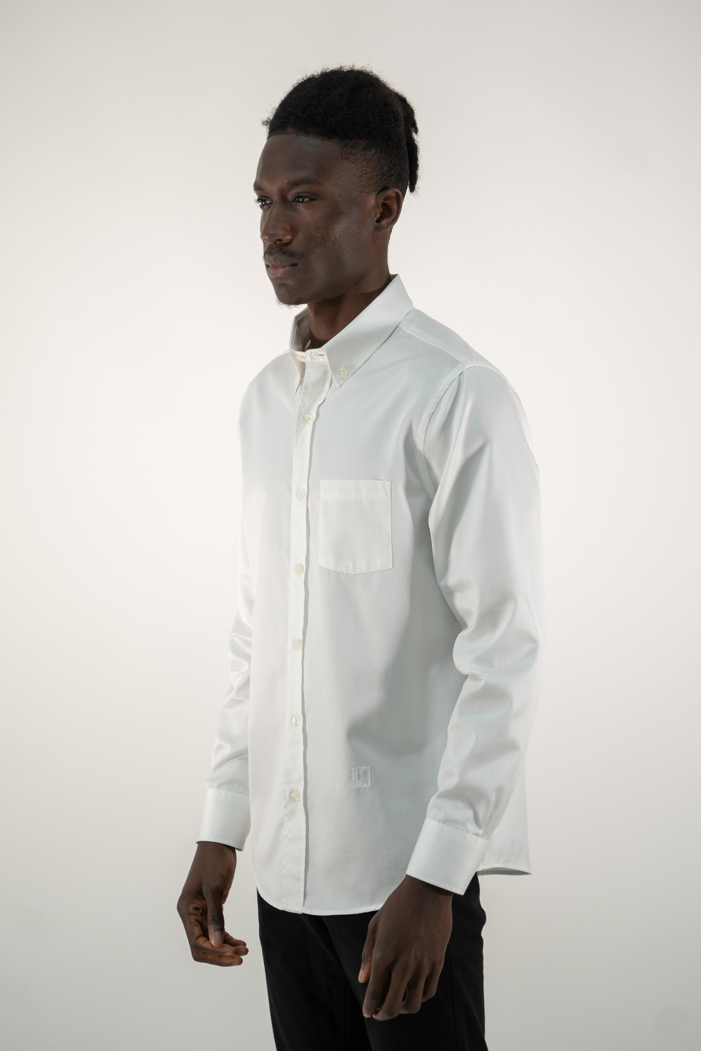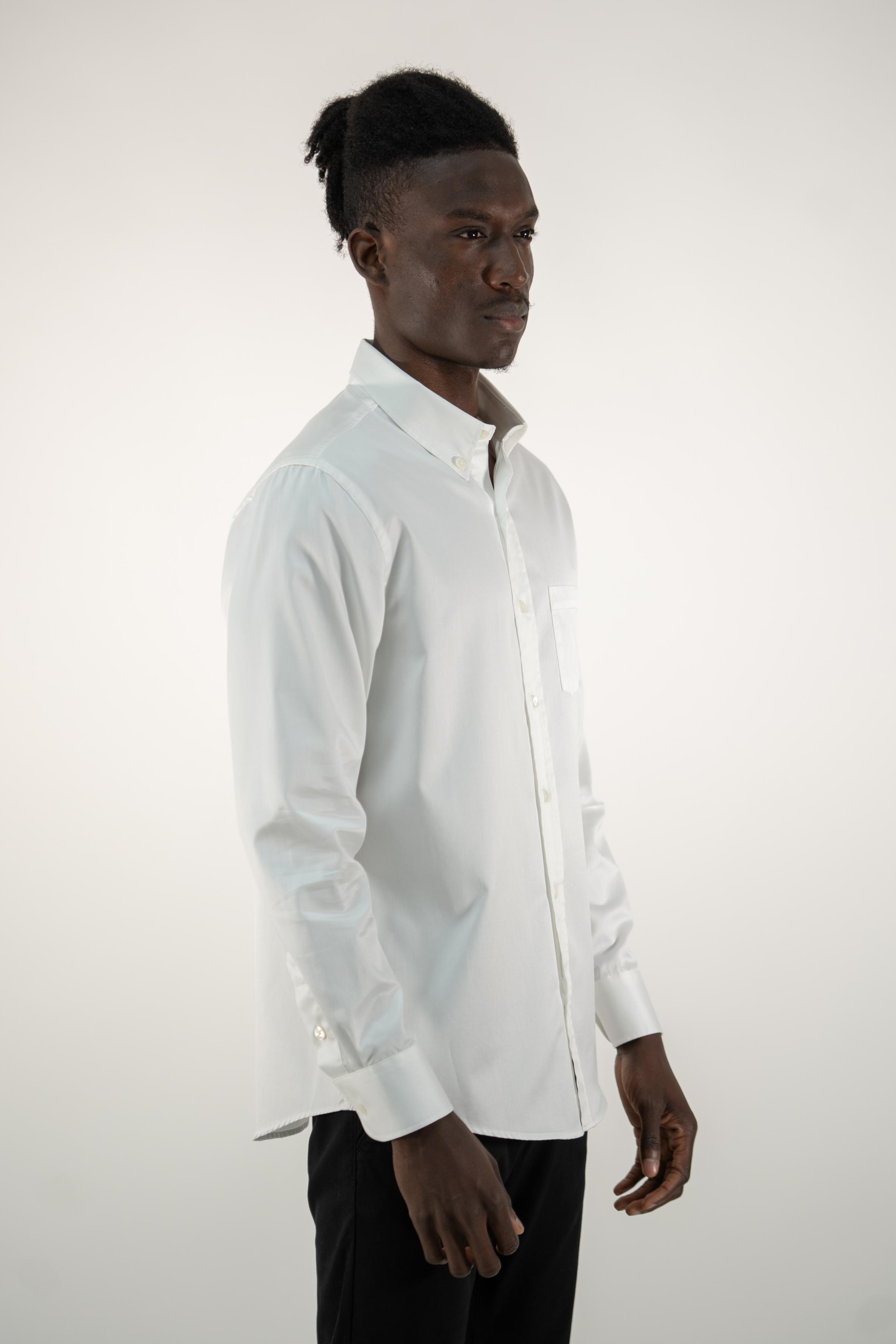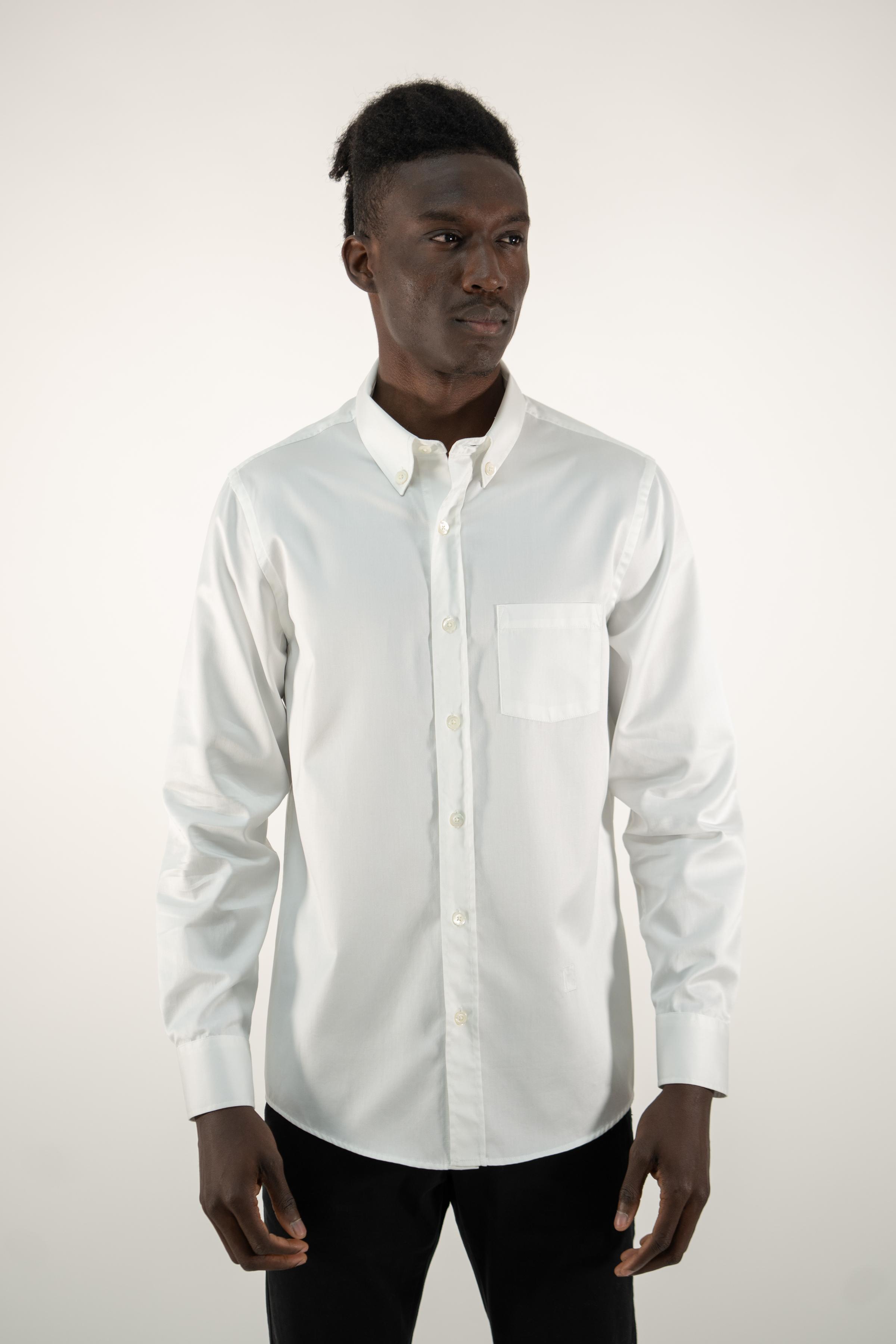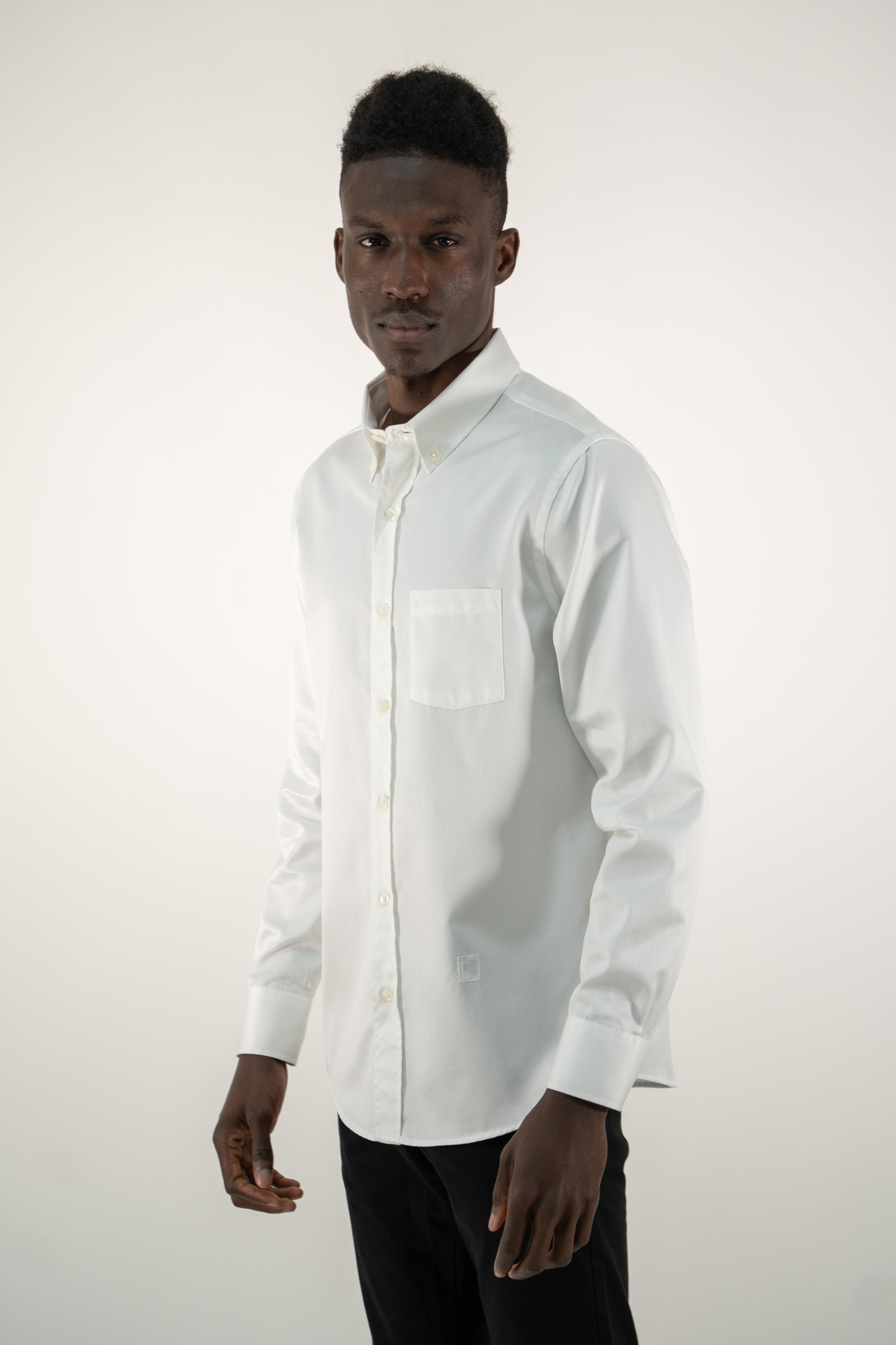 Long-sleeved cotton shirt for men, a wardrobe essential, is crafted with meticulous attention to detail. This shirt seamlessly blends style and comfort. The satin cotton fabric adds a touch of elegance, making it a versatile piece suitable for various occasions. Its classic design with a chest pocket ensures a timeless appeal that transcends fleeting trends.