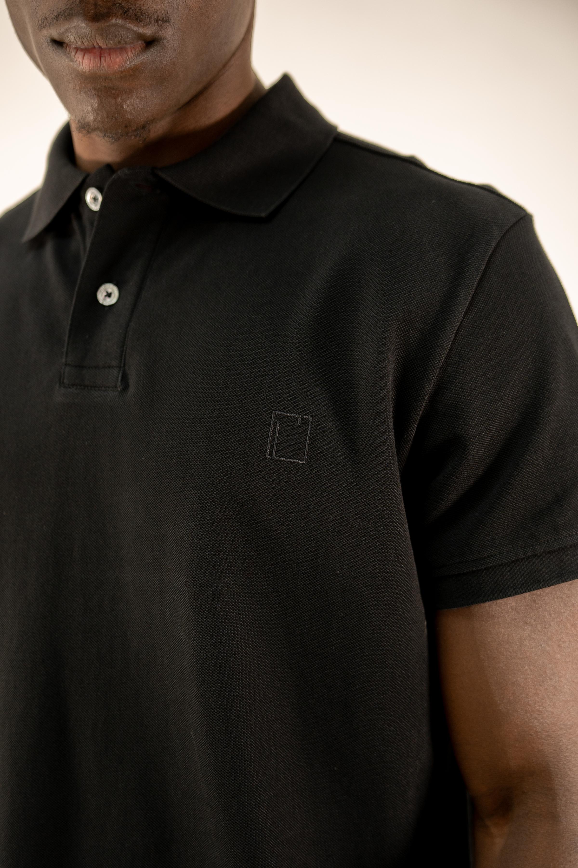 Black Supima cotton polo shirt for men, featuring the sleek MOANUI logo in black embroidery. Crafted from premium Supima cotton, this polo offers unmatched softness, durability, and breathability, ensuring maximum comfort all day long. The classic polo design is enhanced with a modern twist, making it perfect for both casual outings and semi-formal occasions.