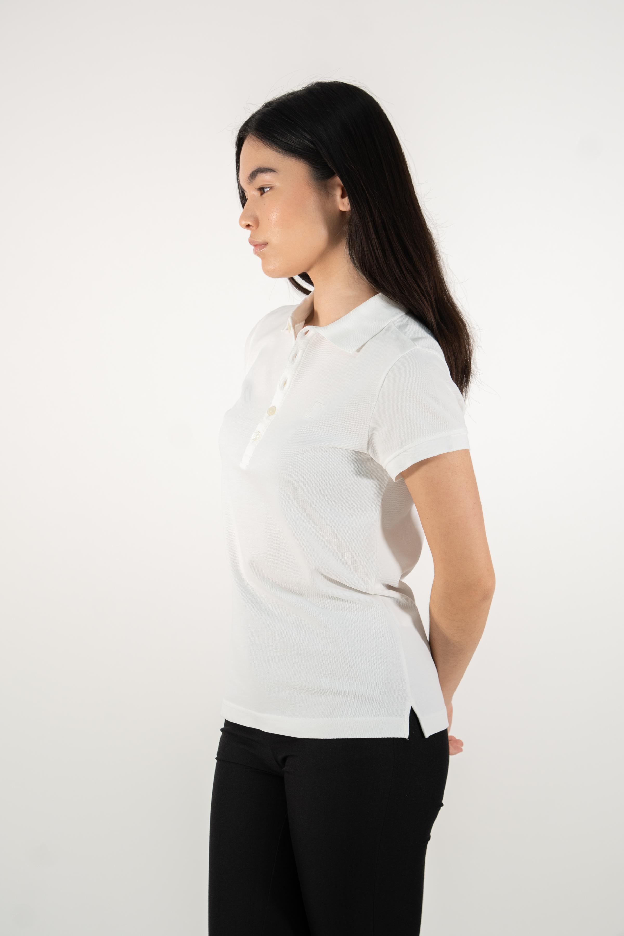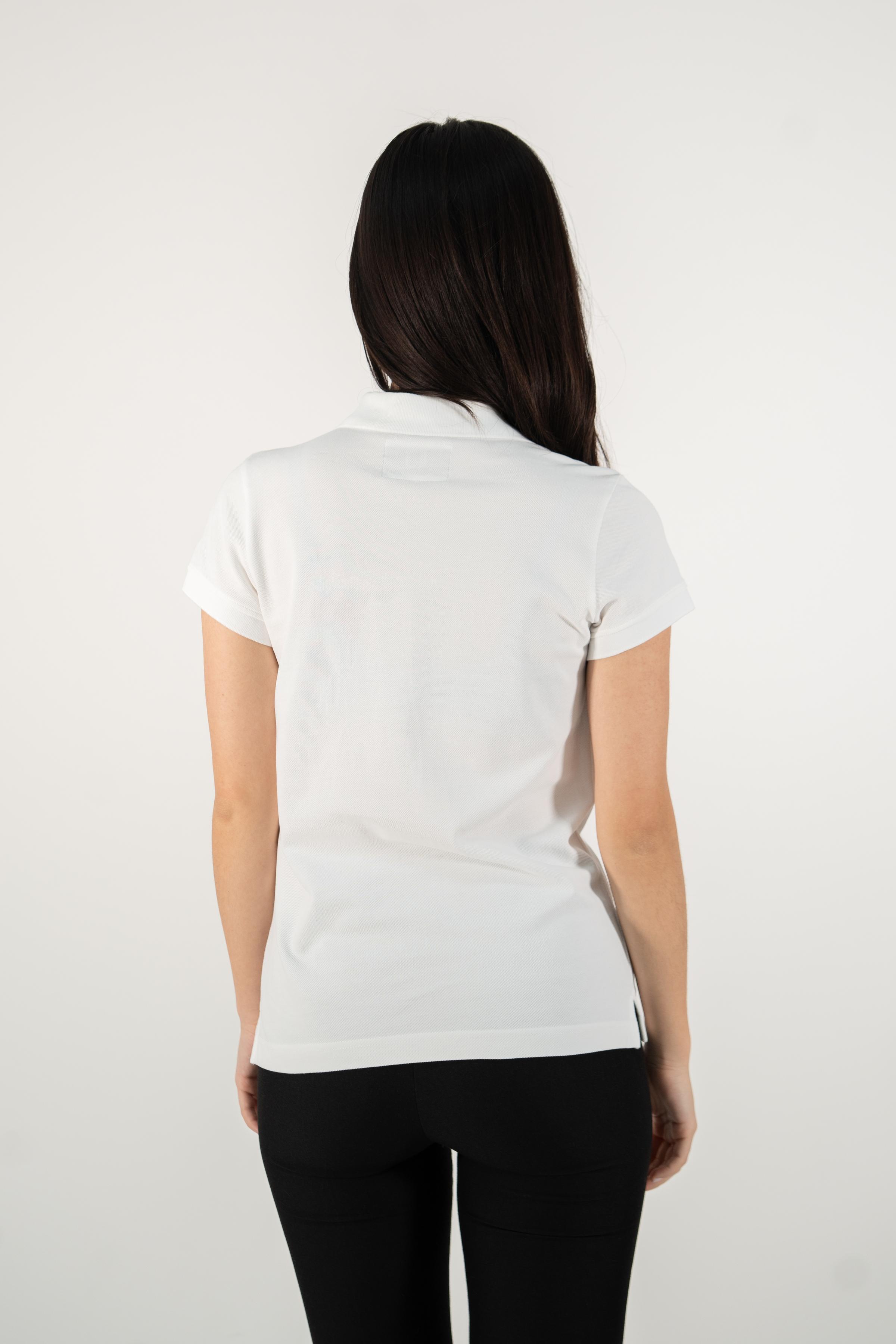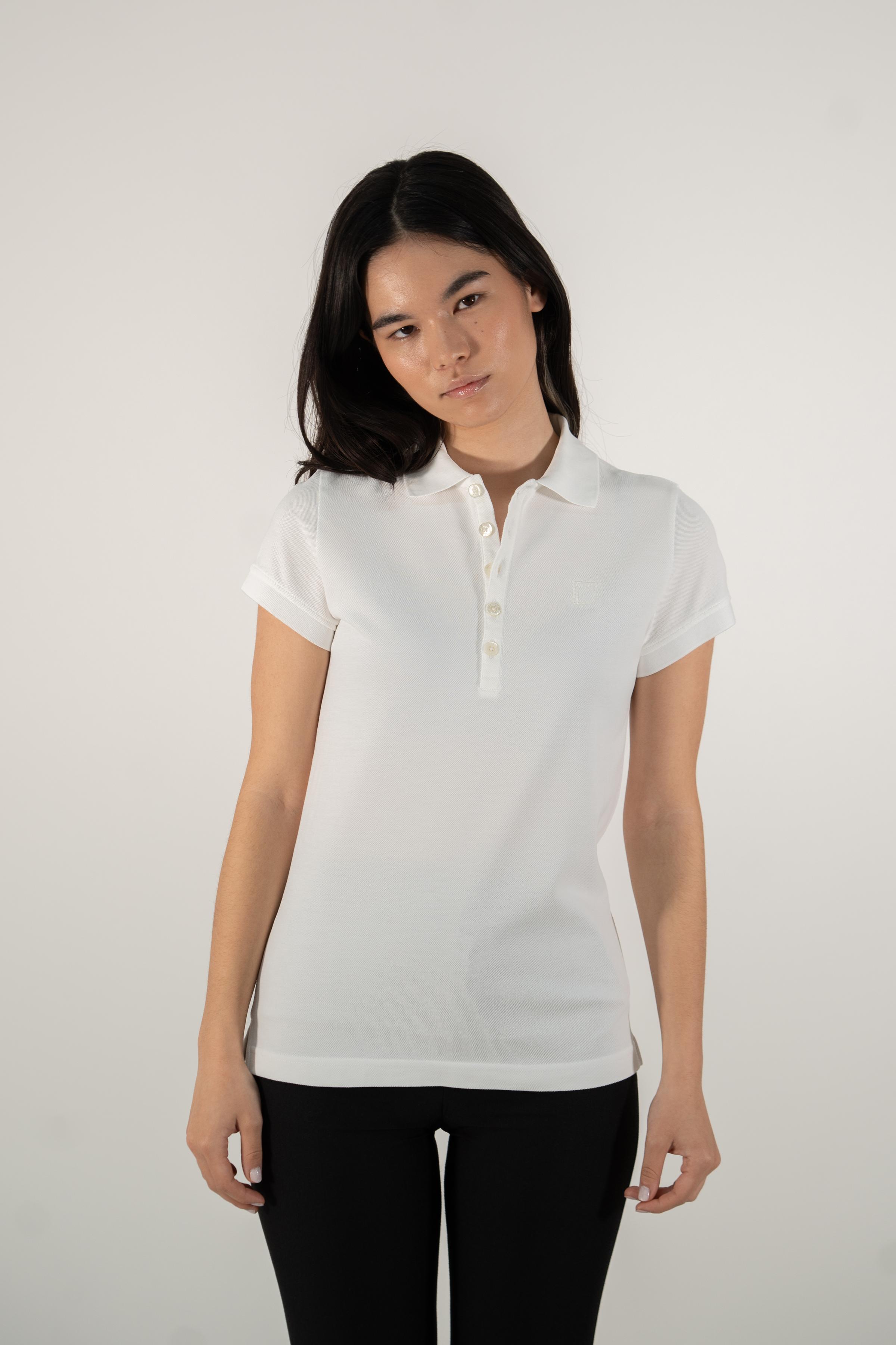 White Supima cotton polo shirt for women, adorned with the elegant MOANUI logo in white embroidery. Crafted from premium Supima cotton, this polo offers unparalleled softness, durability, and breathability, ensuring ultimate comfort throughout the day. The classic polo design is elevated with a modern twist, making it ideal for casual outings and semi-formal occasions alike.