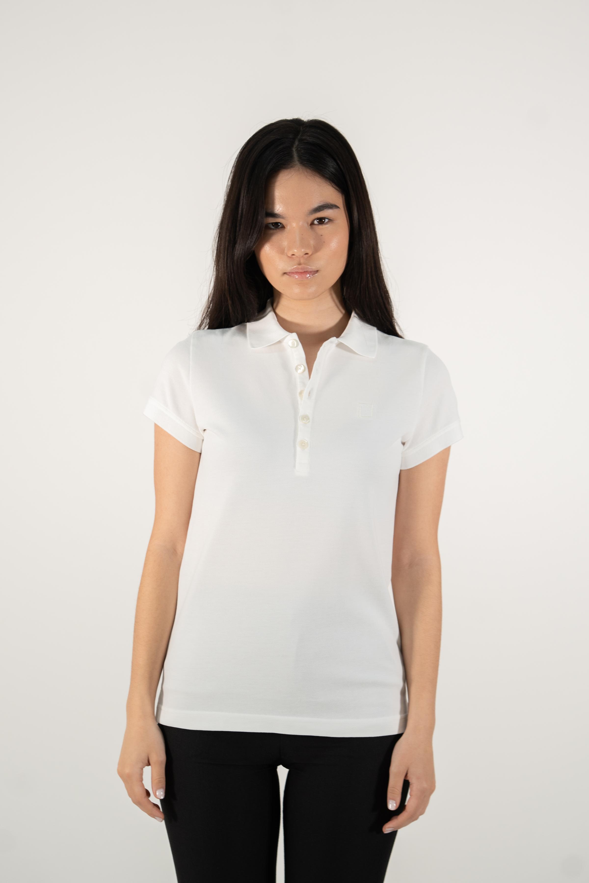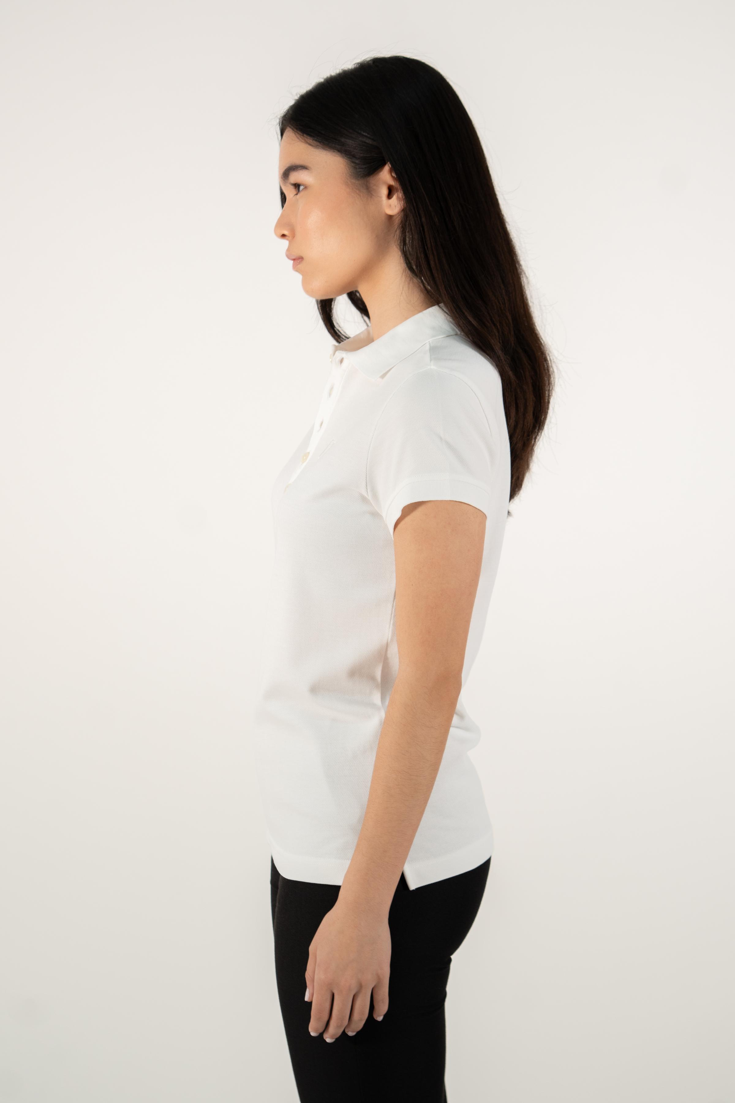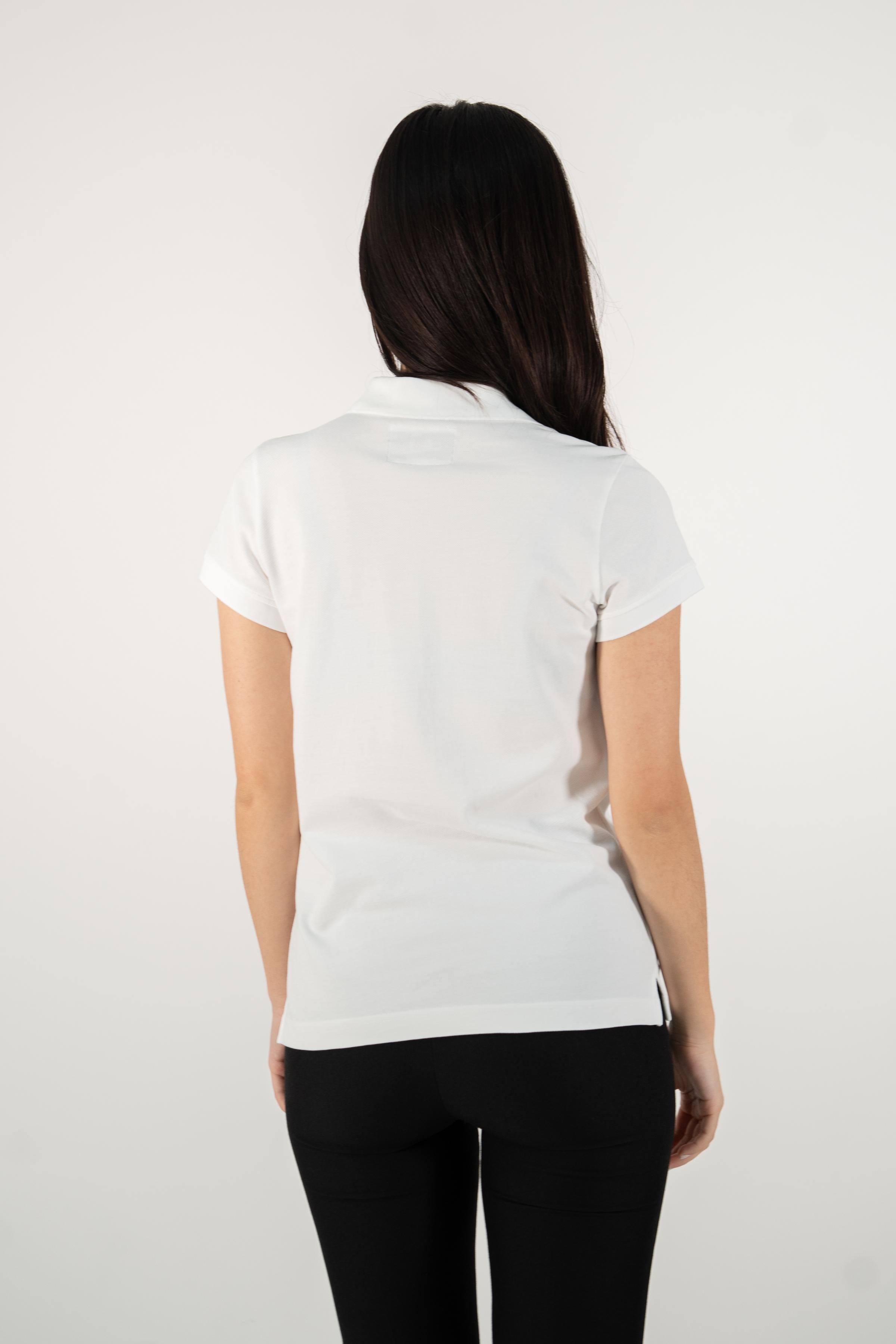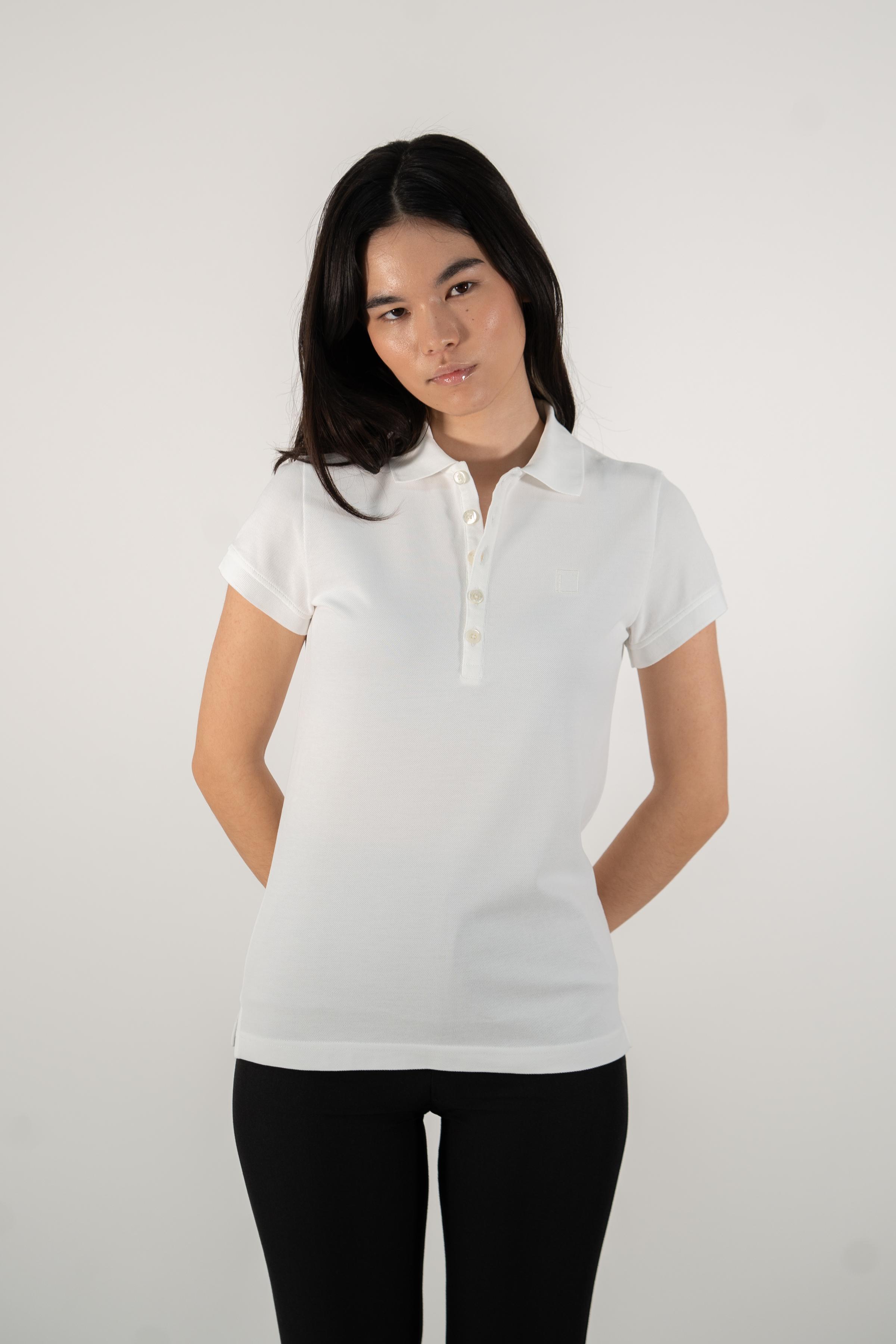 White Supima cotton polo shirt for women, adorned with the elegant MOANUI logo in white embroidery. Crafted from premium Supima cotton, this polo offers unparalleled softness, durability, and breathability, ensuring ultimate comfort throughout the day. The classic polo design is elevated with a modern twist, making it ideal for casual outings and semi-formal occasions alike.
