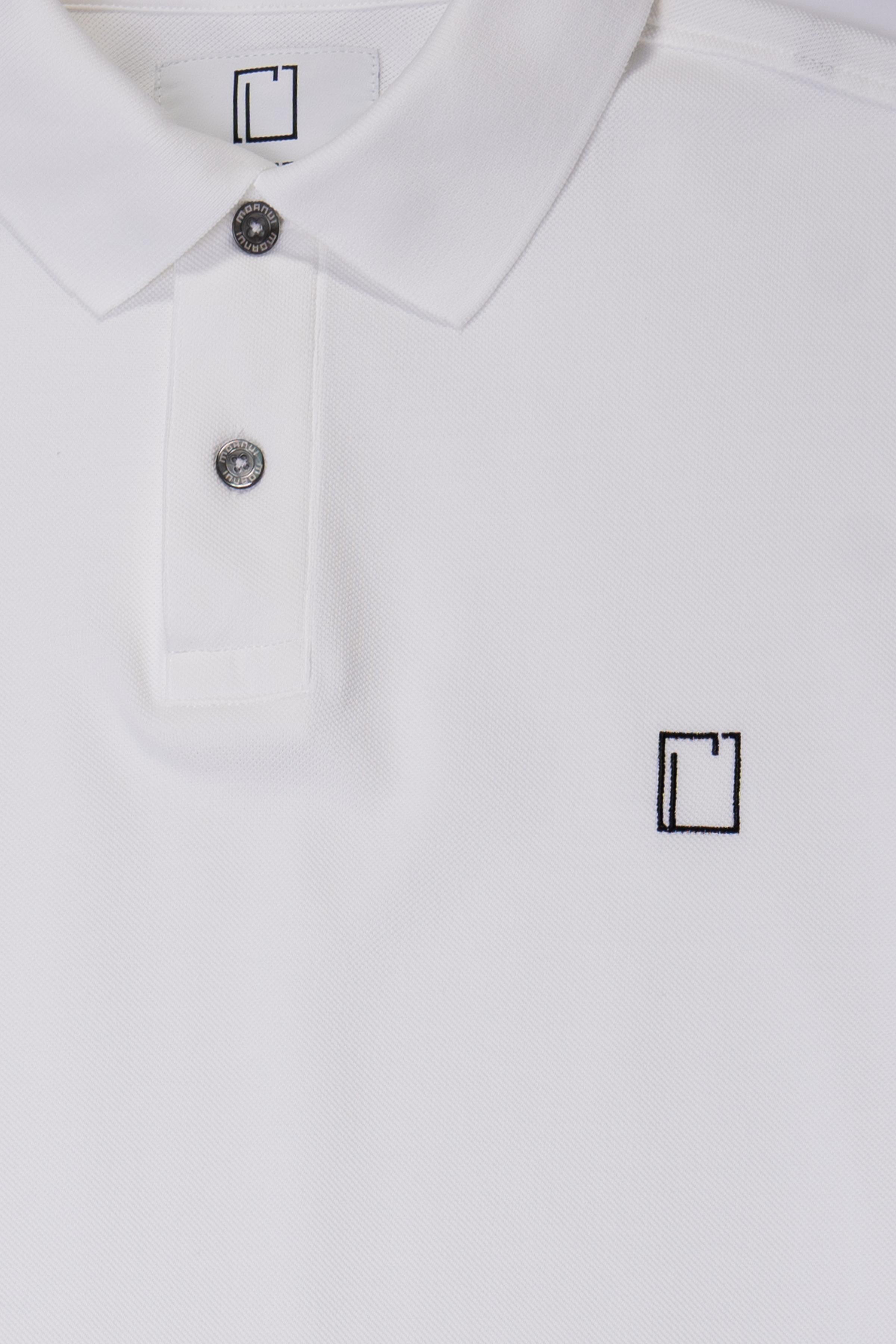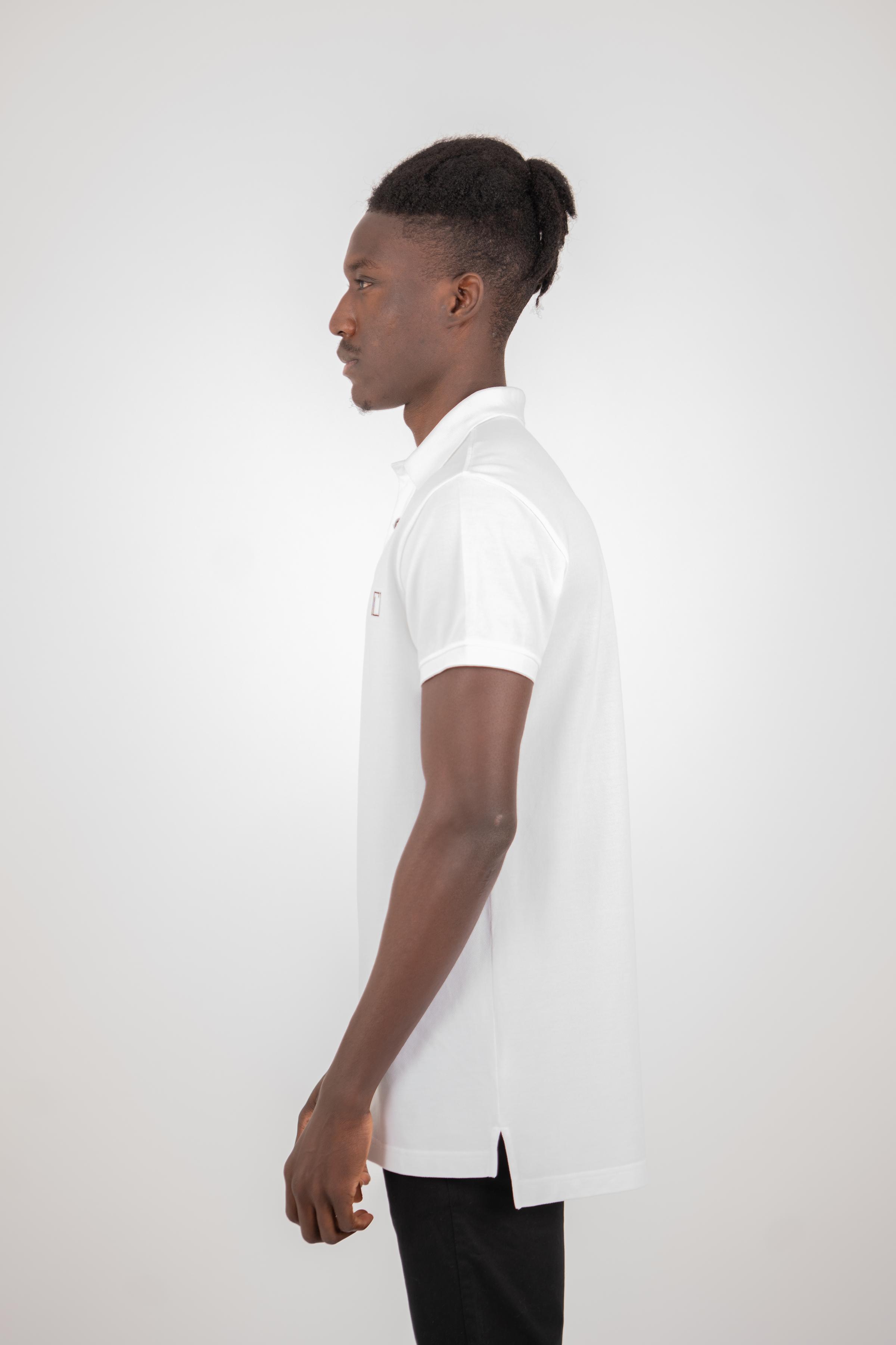 White Supima Cotton polo shirt for men, featuring the sleek MOANUI logo in black embroidery. Crafted from premium Supima Cotton, this polo offers unmatched softness, durability, and breathability, ensuring maximum comfort all day long. The classic polo design is enhanced with a modern twist, making it perfect for both casual outings and semi-formal occasions.